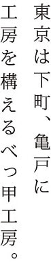 We are a manufacturer of tortleshell work-bekkou in kameido,downtown of Tokyo now meister Minoru Isogai & his 3 brothers make bekkou products.