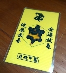 亀札はカード状のお守りですので、亀さんは丁寧に削り込み薄く仕上げました。その分甲羅の色合いがきれいに出ています。